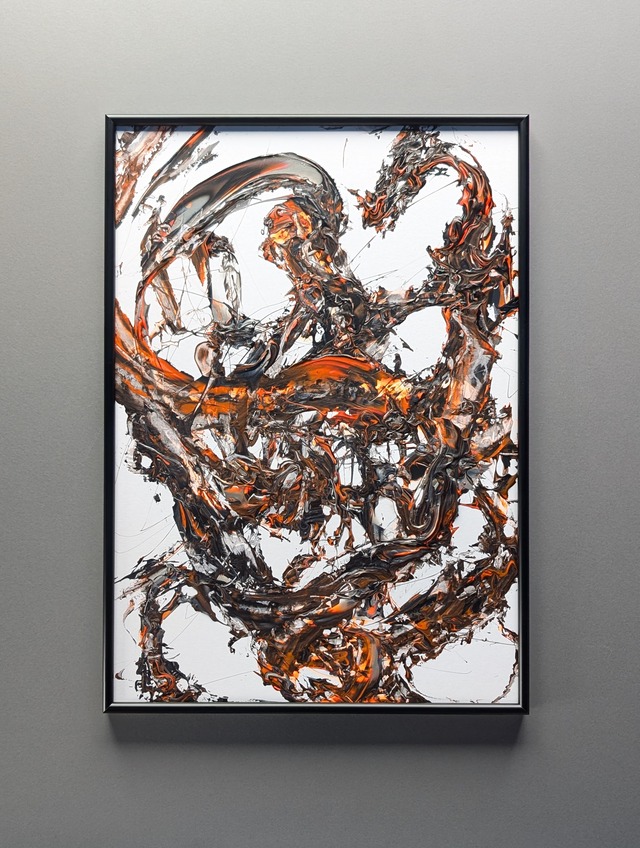 素材:アクリル絵の具、ケントボード サイズ:364×515mm(B3) 額装:作品保護のため、画像のシンプルなフレームに入れてお届けいたします。 ※そのまま飾る事も出来ますが最終的な額装はお客様のご判断にお任せしております。
